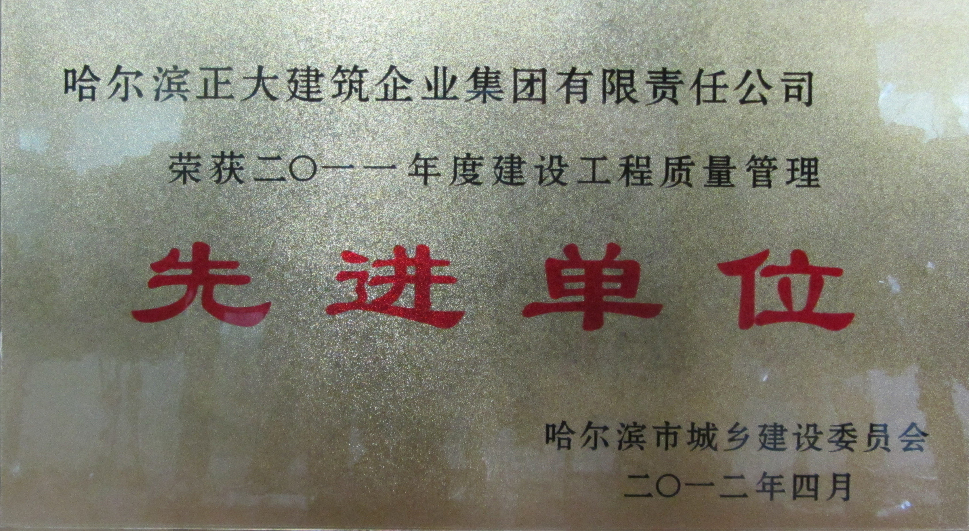 公司成立至今,先后被評(píng)為全國(guó)優(yōu)秀施工企業(yè)、全國(guó)用戶滿意施工企業(yè),全國(guó)首批建筑業(yè)誠(chéng)信施工企業(yè),全國(guó)“安康杯”競(jìng)賽優(yōu)勝企業(yè),全國(guó)工程建設(shè)質(zhì)量管理優(yōu)秀企業(yè)、中國(guó)建設(shè)系統(tǒng)企業(yè)信用信譽(yù)AAA級(jí)單位,并多次榮獲省、市“先進(jìn)單位”、“優(yōu)秀單位”、“重合同守信用單位”、“黑龍江省優(yōu)秀施工企業(yè)”、“黑龍江省用戶滿意施工企業(yè)”等光榮稱號(hào)。并連續(xù)獲得哈爾濱市質(zhì)量管理先進(jìn)單位、黑龍江省質(zhì)量管理先進(jìn)企業(yè)、黑龍江省質(zhì)量管理獎(jiǎng)、黑龍江省“安康杯”優(yōu)勝企業(yè)等榮譽(yù)。并在建筑施工現(xiàn)場(chǎng)環(huán)保管理上創(chuàng)造了一項(xiàng)“中國(guó)企業(yè)新記錄”。